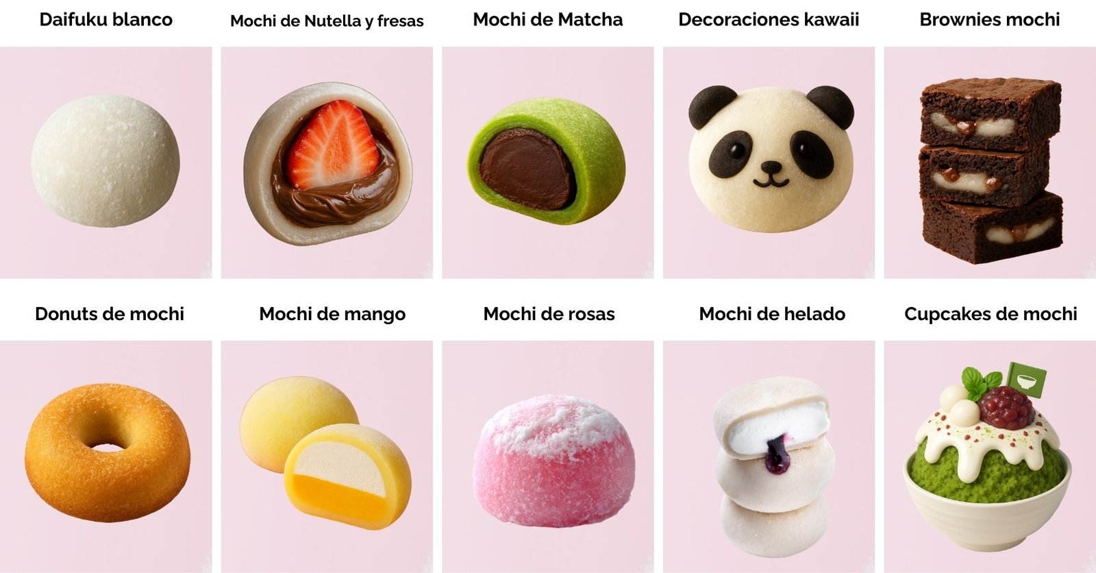 👉 Aprenderás el paso a paso desde lo mas basico hasta lo mas avanzado para elaborar los mas elásticos y deliciosos mochis japones como: