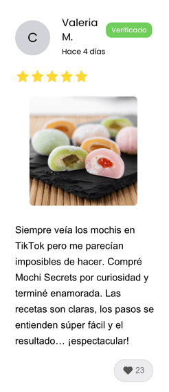 Sí, el Libro de Mochis Secrets está completamente en español, redactado de forma clara y práctica para que aprendas paso a paso sin importar tu nivel de experiencia. Cada receta incluye medidas exactas, técnicas sencillas y consejos profesionales explicados en nuestro idioma, garantizando que disfrutes y apliques el contenido sin complicaciones.